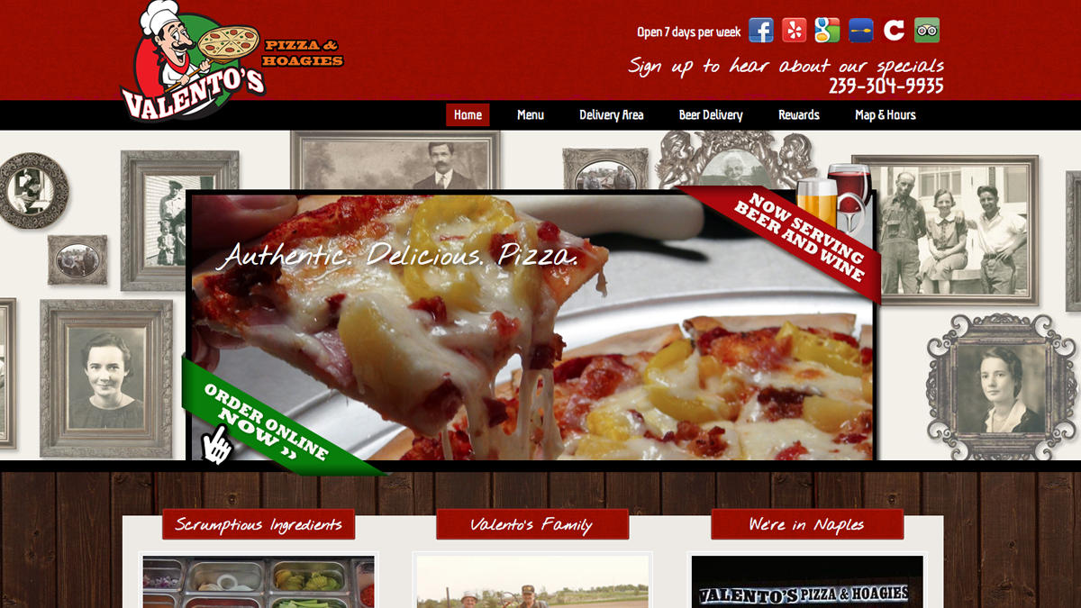 Valento’s Pizza is located in Naples, Florida and offers a delicious “Midwest Style Thin Crust Pizza.” They also serve huge hoagies, yummy wings, pastas, salads, and appetizers. Everything has a ‘homemade’ authentic flavor.